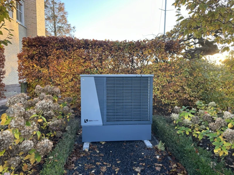 De woning is voorzien van een Alpha Innotec LWDV lucht/water warmtepomp in monoblock-uitvoering. Deze buitenunit onttrekt energie uit de buitenlucht en zet deze om in bruikbare warmte voor de woning.