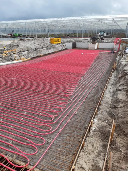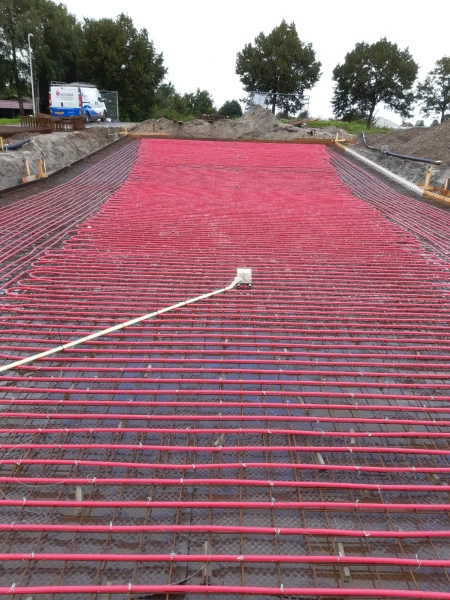 - Vloerverwarming in verblijfsgebieden (kantoren, kantine, sanitaire ruimtes).