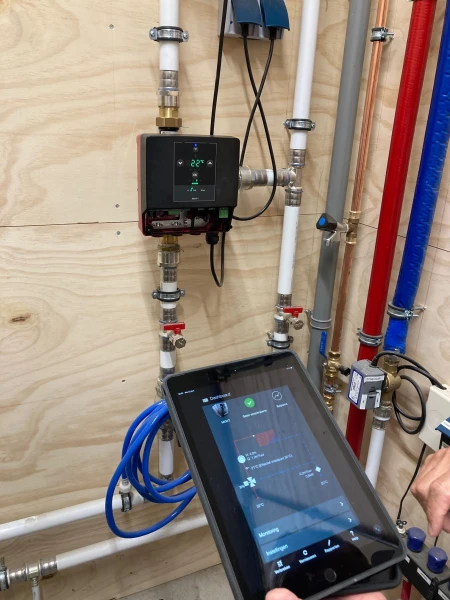 Voor het nauwkeurig regelen van de juiste aanvoertemperaturen in het afgiftesysteem is een Grundfos MIXIT mengregeling toegepast. Hiermee worden de mengtemperaturen optimaal afgestemd op de vloerverwarming, wat zorgt voor stabiel en comfortabel warmteafgifte.