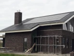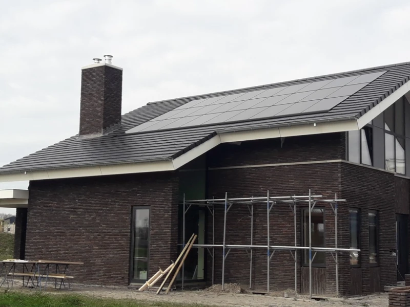 Op het dak is een Full Black zonnepaneleninstallatie als indaksysteem gemonteerd, wat perfect aansluit bij de luxe uitstraling van de woning. De installatie is gekoppeld aan een omvormer van SolarEdge voor optimale opbrengst en monitoring per paneel.